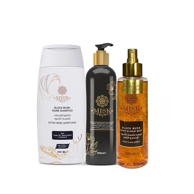 اكتشفي جوهر الأنوثة مع حزمة الأنوثة الحصرية لدينا، المصممة بعناية لتدللك وتجدد حيويتك. ابدئي رحلتك مع شامبو الحجاب بمسك الأسود، تركيبة مغذية تُعيد الحياة لشعرك، لتمنحه عطرًا يأسر الألباب يدوم طوال اليوم. ثم استخدمي رذاذ الشعر والجسد بمسك الأسود، الذي تم تصميمه بشكل احترافي لإنعاش شعرك وجسدك، بينما يعمل على طرد الروائح غير المرغوب فيها. وأخيرًا، استمتع بالجل الاستحمام الكريمي بمسك، الذي ينظف بعمق، ويرطب، ويترك بشرتك ناعمة وسلسة، مغطاة بعطر مسك مغري. استمتعي بهذا الطقوس الفاخرة للعناية الذاتية ودعي أنوثتك تتألق.