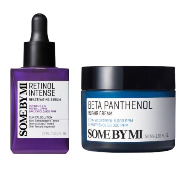 استعدي لانتعاش بشرتك مع حزمة الشمس: تشمل سيروم بعض من مي ريتينول المكثف وكريم بيتا بانثينول لتحقيق بشرة شابة ومتجددة.